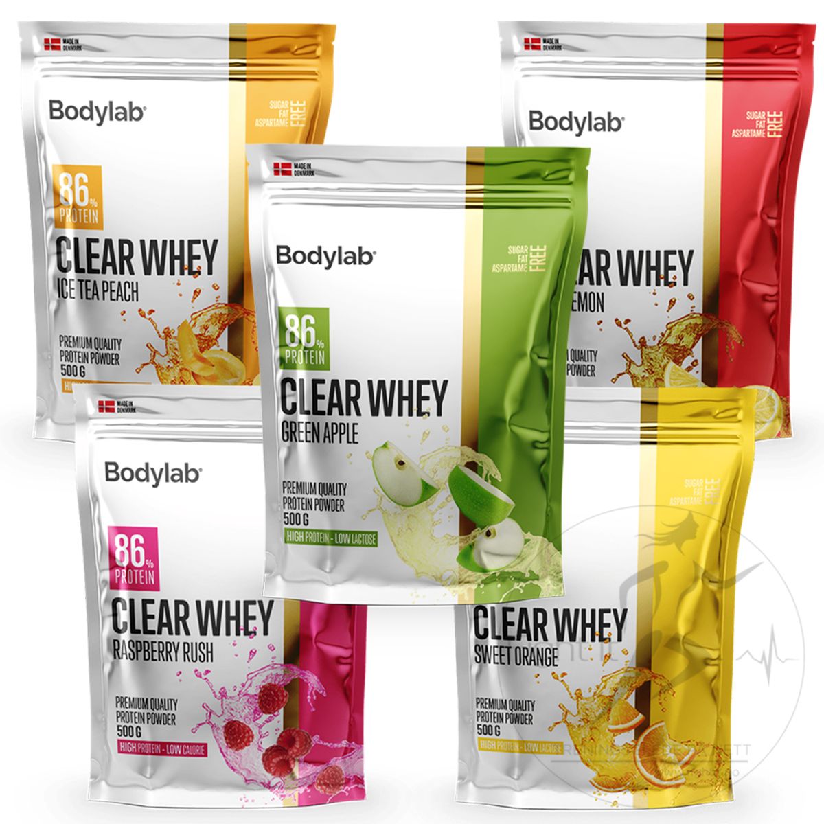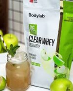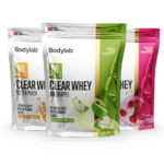 | Myseproteinpulver med ferskensmak. Inneholder søtningstoffer. |