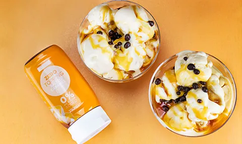 | Dessertsaus med jordbær. Inneholder søtningsmiddel. Kan virke avførende ved stort inntak. Med et naturlig innhold av sukker. |