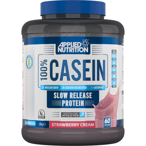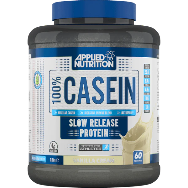 Applied Nutrition 100 % kaseinprotein er viktig for alle som ønsker å fylle på muskler under søvn, når det er upraktisk å innta mat eller drikke.