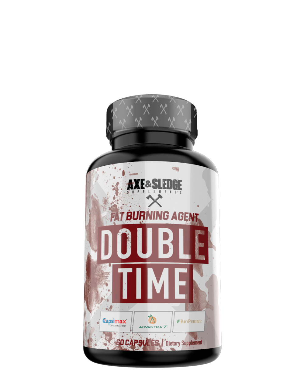 WHEN YOU NEED TO KICK YOUR METABOLISM INTO OVERTIME, REACH FOR A BOTTLE OF DOUBLE TIME FROM AXE & SLEDGE! DOUBLE TIME IS A FAT-BURNING THERMOGENIC THAT’S FORMULATED FOR EVERYONE. AS THE NAME SUGGESTS, DOUBLE TIME IS DESIGNED TO BE TAKEN FIRST THING IN THE MORNING AND IN THE EARLY AFTERNOON TO KEEP YOU ENERGIZED, FOCUSED, AND BURNING FAT.