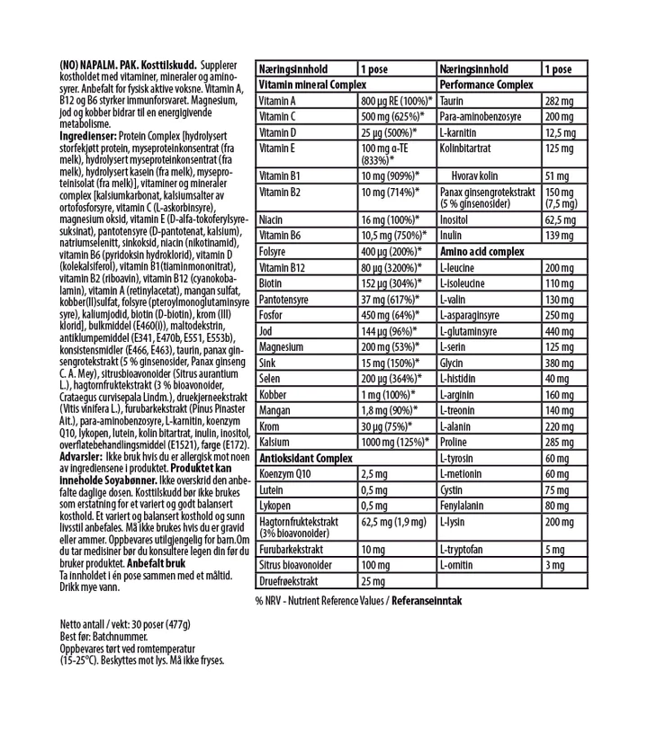 NAPALM Pak kosttilskudd kombinerer 35 komponenter som hjelper deg å opprettholde en sunn og variert diett.