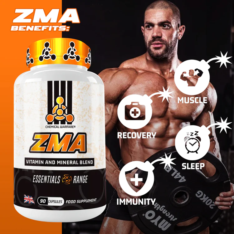 Chemical Warfare ZMA-kapsler kan bidra til å redusere tretthet . ZMA er en unik anabole mineralstøtteformel som inneholder sink og magnesium. Formuleringen er ytterligere forbedret med inkludering av vitamin B6.